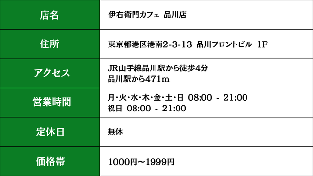 伊右衛門カフェ 品川店は、JR品川駅港南口から徒歩約3分という好立地に位置するカフェ。