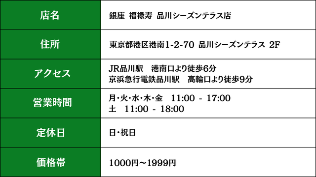 銀座 福禄寿 品川シーズンテラス店|上質な和スイーツとだし茶漬けが自慢の和カフェ