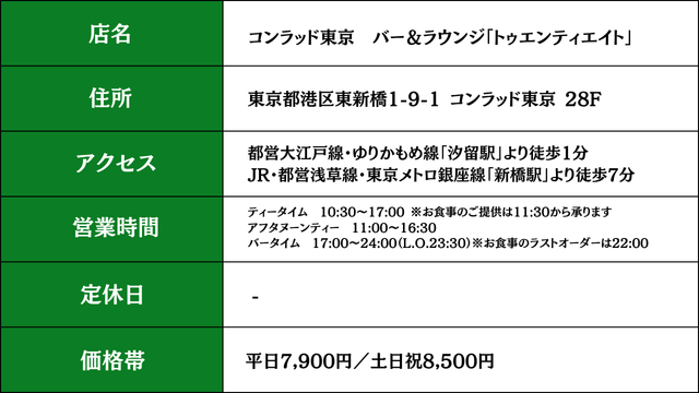 出典:コンラッド東京 (https://conrad-tokyo.hiltonjapan.co.jp/plans/restaurants/afternoontea/twentyeight-matcha)