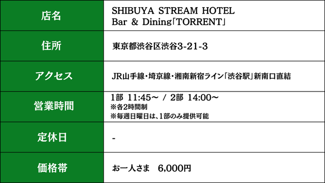 出典:STREAM HOTEL (https://www.tokyuhotels.co.jp/shibuyastream/restaurant/dining/plan/127372/index.html)