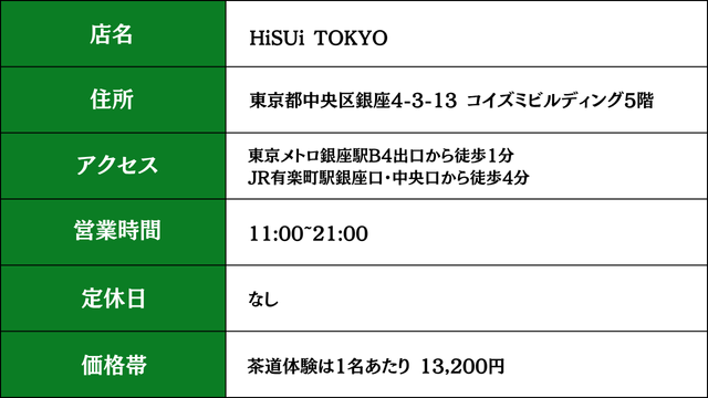 1. HiSUi TOKYO(銀座)|本格茶室「翠庵」で体験する和の世界