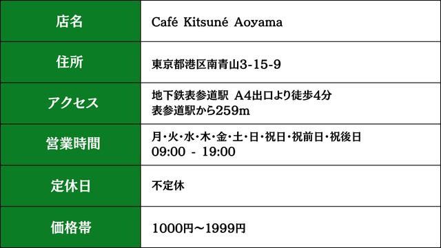 出典:GREEN SEED(https://greenseed.jp/blog/cafe-kitsune-aoyama-5114.html)