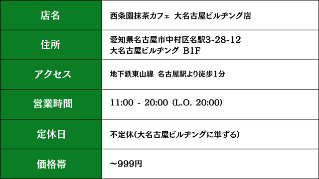 1. 西条園抹茶カフェ(大名古屋ビルヂング店)|駅直結で味わう、老舗の抹茶力
