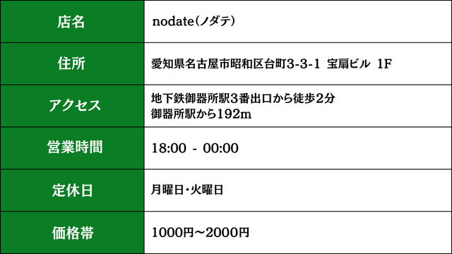 名古屋・御器所にある「nodate.(ノダテ)」は、昼はカフェ・夜はレストランバーという二面性を持つ、日本茶とスパイスの魅力を融合したおしゃれなカフェ。