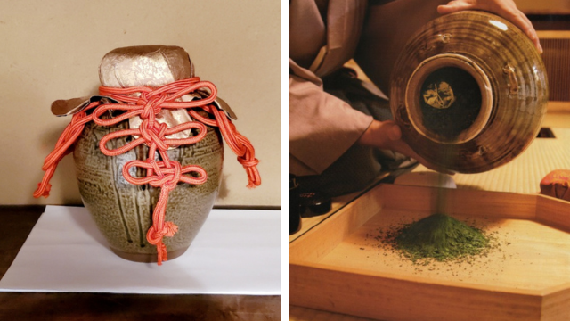 「口切り」は、密閉された茶壷を開封し、中の碾茶を茶臼で挽いて抹茶をつくる儀式です。