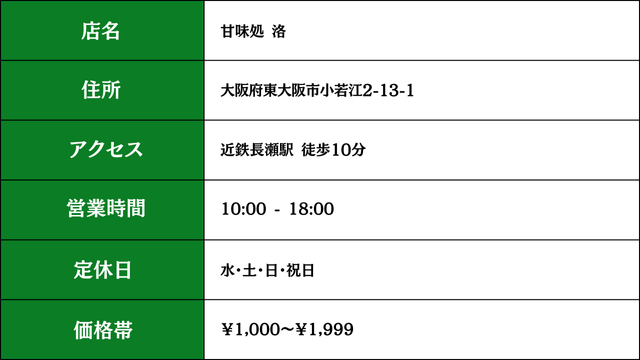 1. 甘味処 洛(らく)(長瀬/近鉄長瀬駅 徒歩10分)