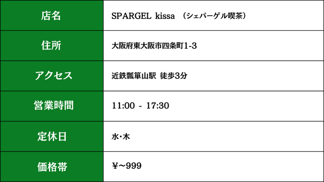 2. SPARGEL kissa(瓢箪山/近鉄瓢箪山駅 徒歩3分)