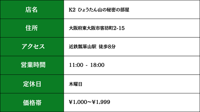 3. K2 ひょうたん山の秘密の部屋(瓢箪山/近鉄瓢箪山駅 徒歩8分)