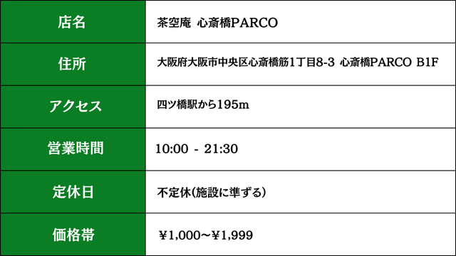 3.茶空庵 心斎橋PARCO B1F