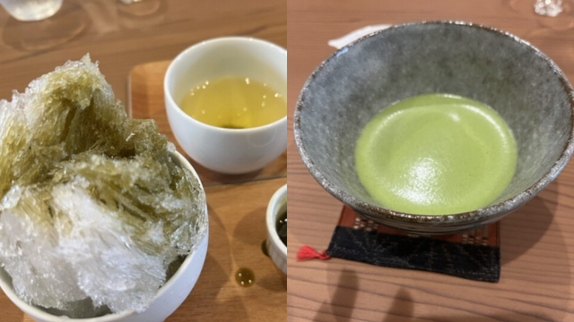 おすすめは「抹茶みつのかき氷」。抹茶の香りと味がしっかりしていて、とても美味しいです。お気に入りの急須を選んで、自分らしくお茶を楽しむ体験ができます。