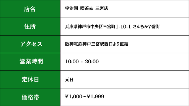 ② 宇治園 喫茶去 さんちか店(三宮駅すぐ・さんちか7番街)