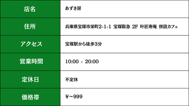 ① 叶匠壽庵 あずき房(宝塚阪急2F・宝塚駅直結)