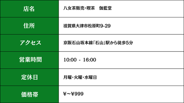 大津市には、観光名所の石山寺そばで楽しむ濃厚抹茶かき氷「叶匠壽庵」、古民家の趣あふれる「伽藍堂」、参道沿いで静かに抹茶時間が過ごせる「CaFe KanOn」と、スタイルの異なる抹茶カフェが揃っています。歴史や景観とともに“抹茶時間”の癒やし体験を楽しみたい方、ぜひこの記事を参考にしてみてください。