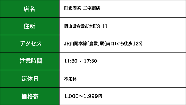 ③三宅商店 町家喫茶 三宅商店 本町店 【倉敷市・本町】