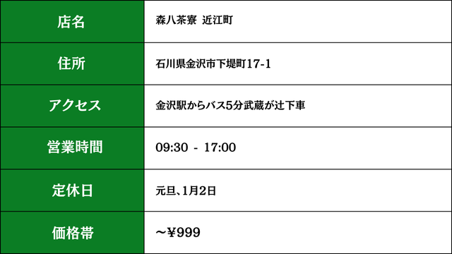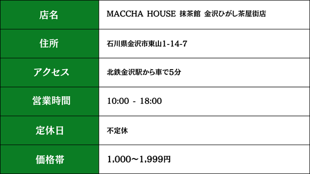 ①MACCHAHOUSE 抹茶館 金沢ひがし茶屋街店