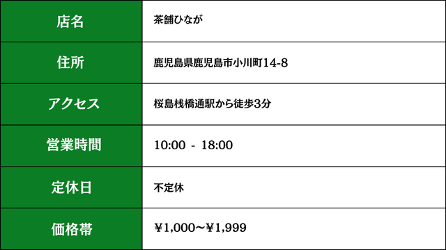 ①茶舗 ひなが(Chaho Hinaga)【鹿児島駅近く・小川町】
