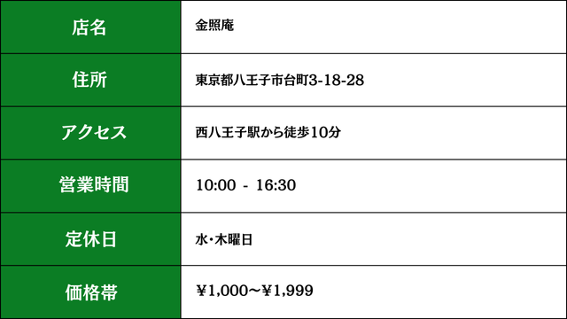八王子には、和の趣を感じさせる「カフェ金照庵」、駅近で便利な「CAFE&BAR NOOON」、住宅街にひっそり佇む雰囲気ある「月待チ珈琲店」といった個性ある抹茶・和甘味のお店が揃っています。それぞれアクセスや空間のタイプが異なるので、その時の気分や予定に合わせて選べるのも魅力です。スイーツメニューや抹茶ドリンクが充実しているお店を探している方は、ぜひこの3店をチェックしてみてください。