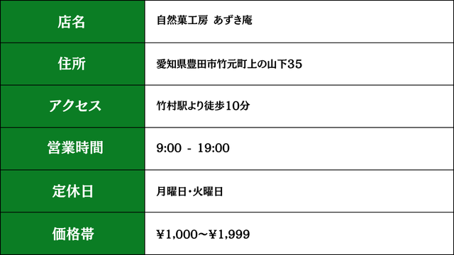 ②自然菓工房 あずき庵(豊田市 竹元町)