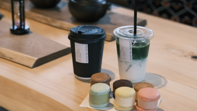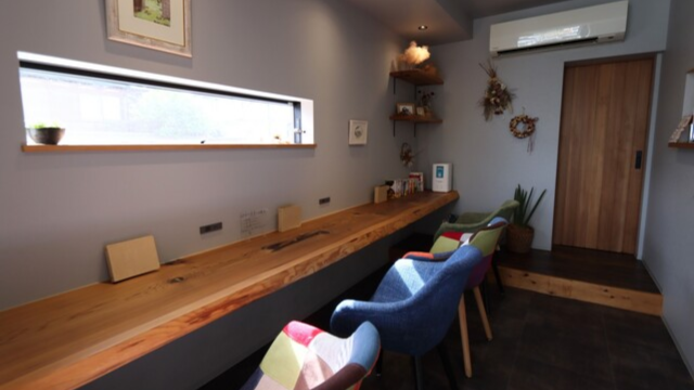 特徴:抹茶と珈琲を売りにした小さなカフェ。抹茶ラテ、抹茶セット、本お菓子との組み合わせ提供がメニューにあります。