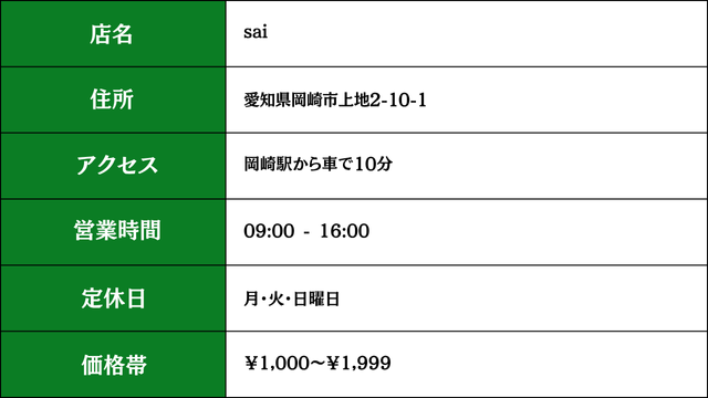 ①Sai(サイ)(岡崎市上地 他)