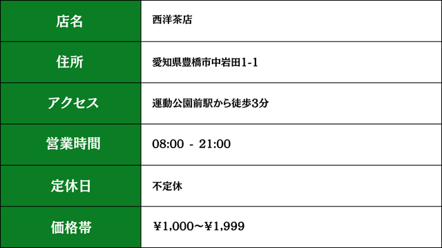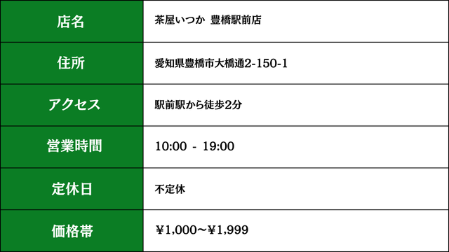 豊橋市には、駅直結の 61Cafe&Bar あおいだもん、駅前和スイーツの 茶屋いつか、そして喫茶+甘味を楽しめる 西洋茶店 という3つのタイプが揃っています。駅近や商業施設、住宅地近くと立地もバラエティがあり、用途や気分に合った選択が可能です。来店前には最新の営業時間・メニュー確認をおすすめします。抹茶や和スイーツを探すなら、この3店をまずチェック候補にどうぞ。