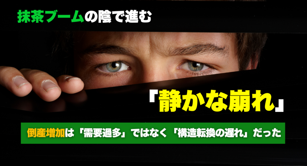 2025.12.06 抹茶ブームの陰で進む倒産増加は「需要過多」ではなく「構造転換の遅れ」だった 世界的な抹茶ブームが続き、抹茶ラテやスイーツは国内外のカフェで「定番メニュー」となりました。輸出額も過去最高を更新し、日本が誇る茶産業は追い風の真っただ中にある... サステナブル経営 Author: 抹茶タイムズ